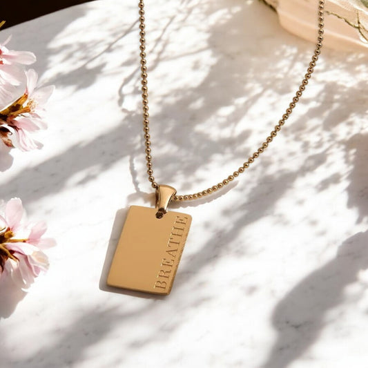 Leaf Hollow 18ct Gold "With Hardship Comes Ease" Necklace