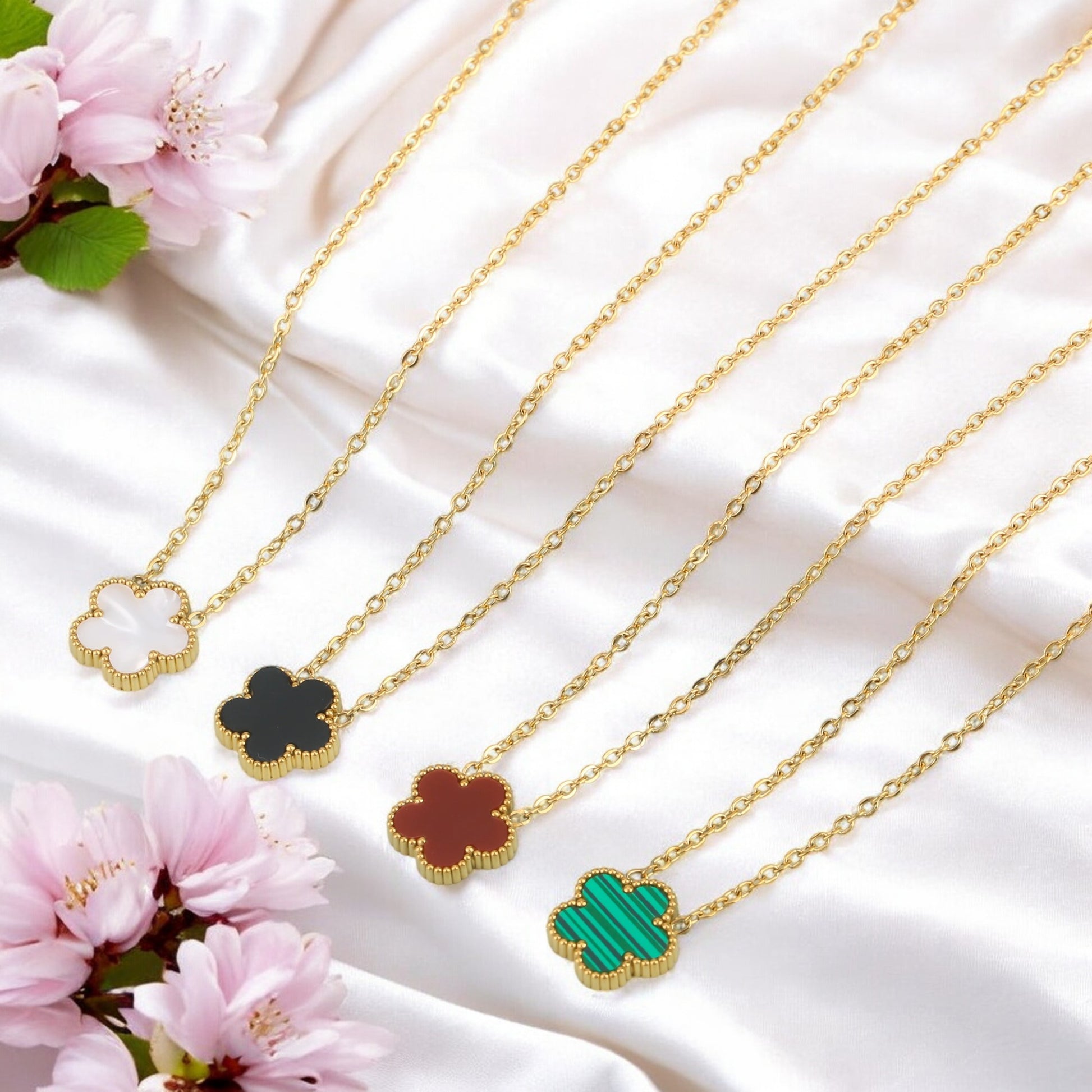 Celebrate luck and elegance with this Four-Leaf Clover Necklace. Crafted from durable stainless steel, this piece features a delicate gold-tone chain adorned with a classic four-leaf clover pendant. Available in green, red, and black, each colour adds a unique touch of sophistication and charm to your jewellery collection.